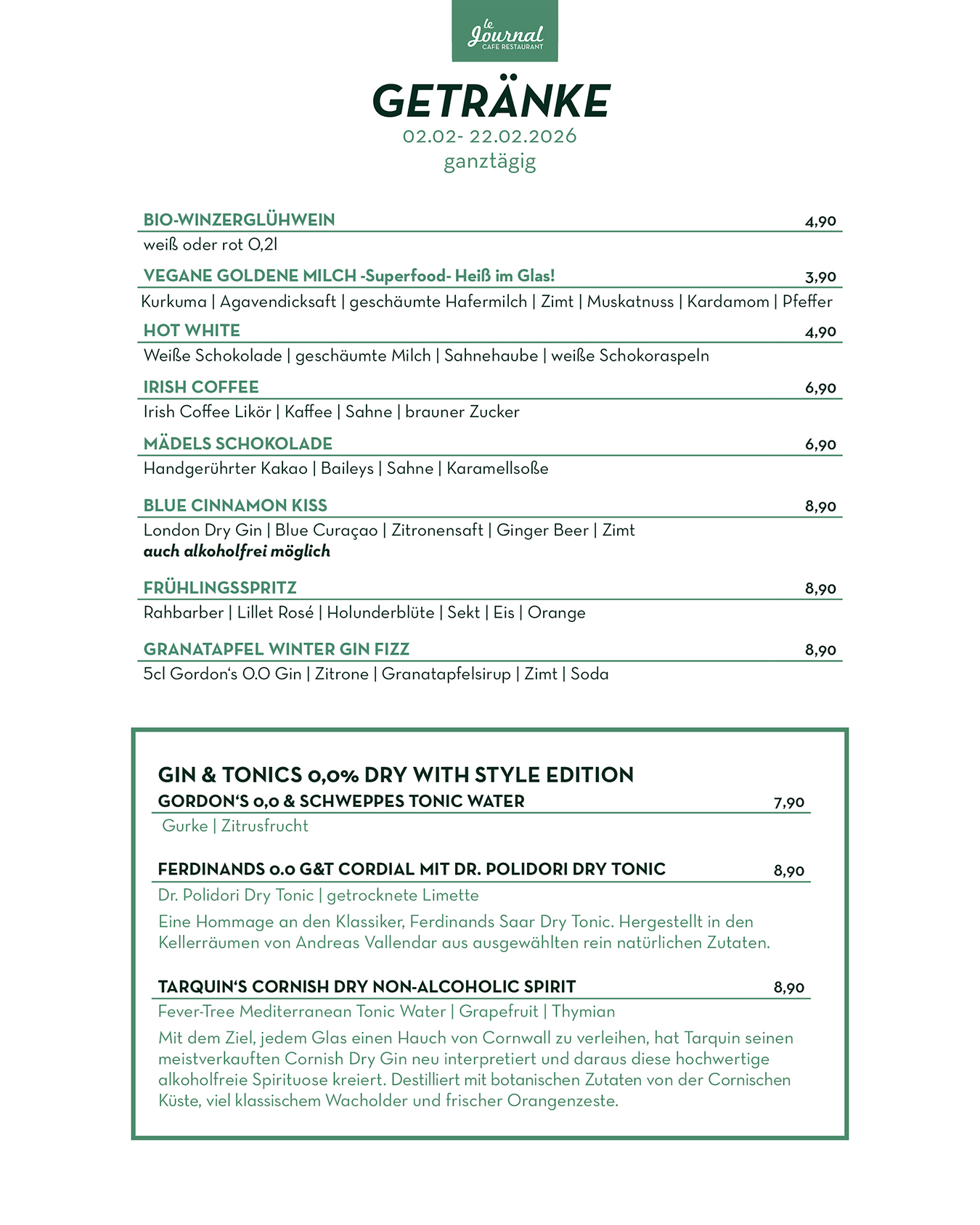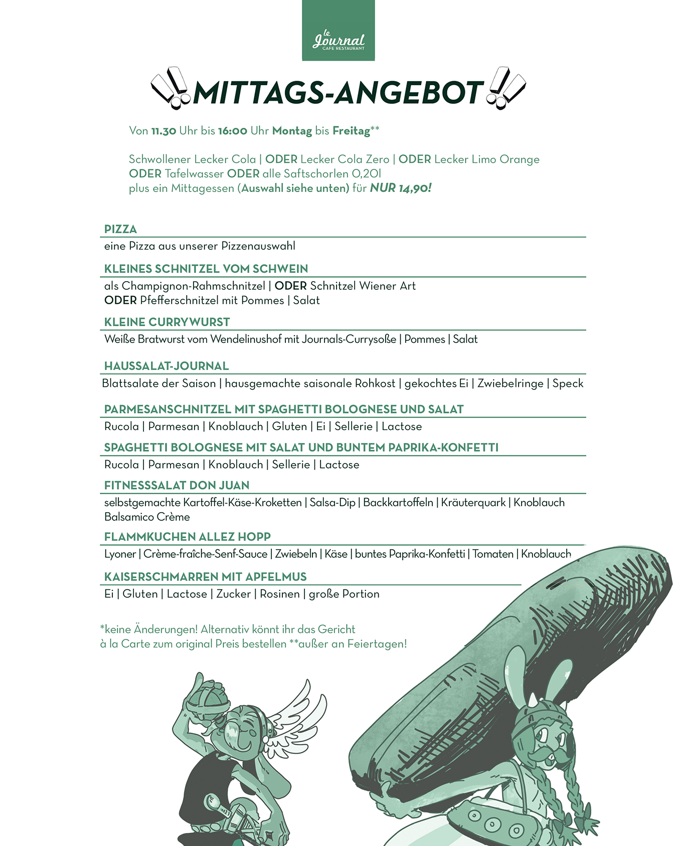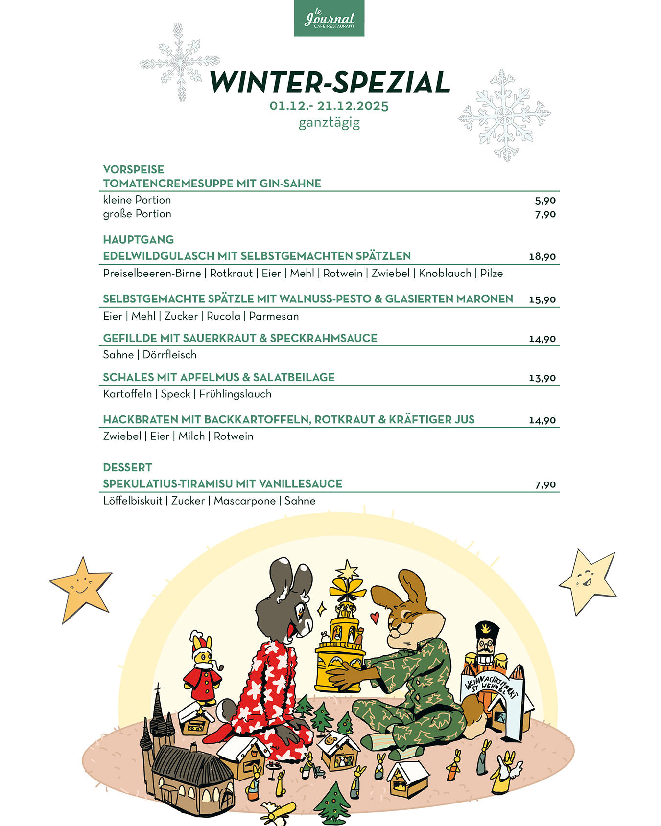 durchgehend warme Küche von 11.30 Uhr bis Open End (mind. bis 21.00 Uhr)