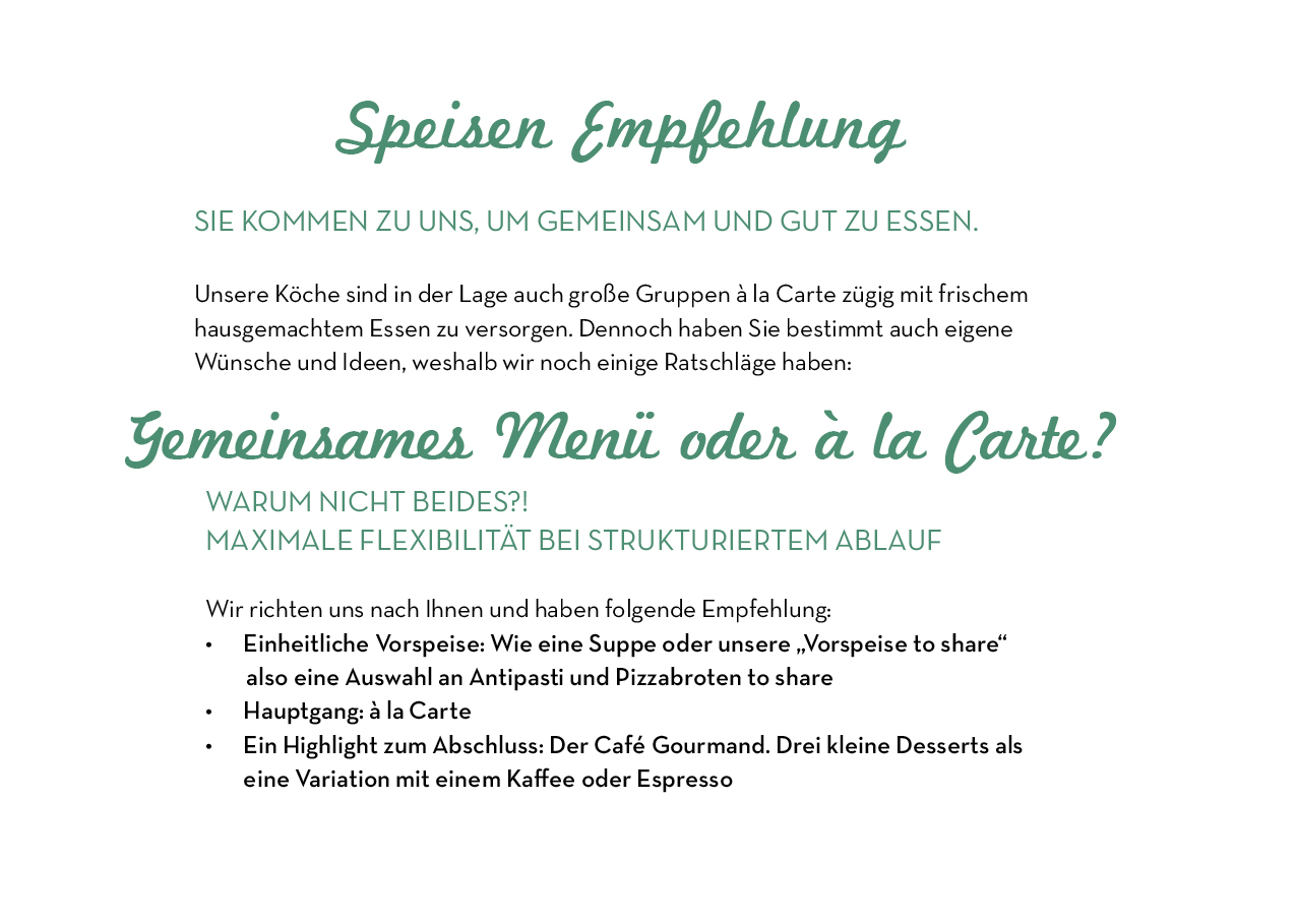 Dann haben wir für sie hier unseren Veranstaltungsguide mit unseren Räumlichkeiten sowie Speiseempfehlungen.